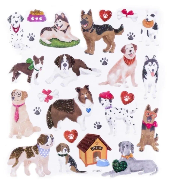 Attrakcyjne naklejki z psami kompletne z brokatem