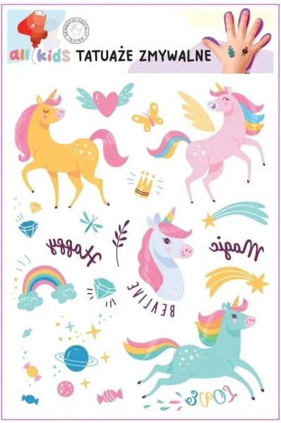 Tatuaże zmywalne dla dzieci Tęczowe jednorożce - All4Kids