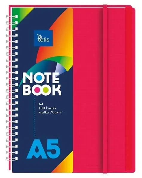 Kołonotatnik A5/100K kratka PP czerwony - Tetis