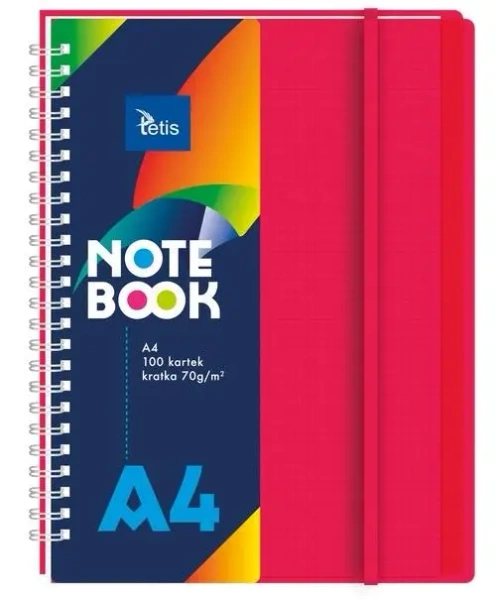 Kołonotatnik A4/100K kratka PP czerwony - Tetis