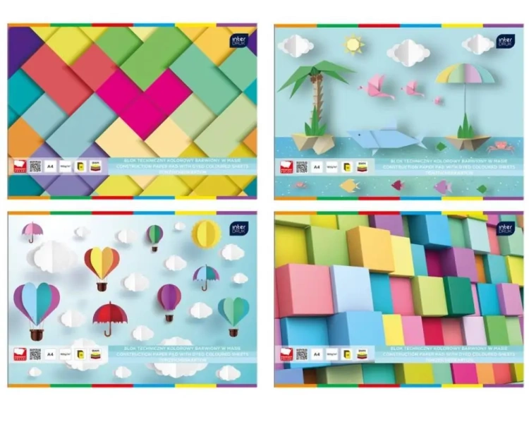Blok techniczny kolor. A4 10k. barwiony w masie, Interdruk