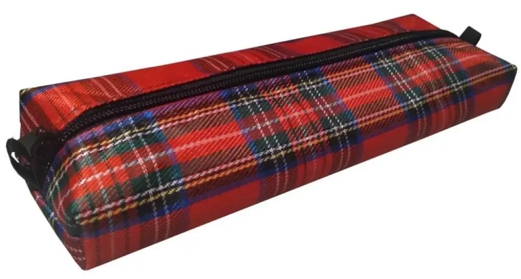 Szkolny piórnik szachownicowy w odcieniach czerwieni