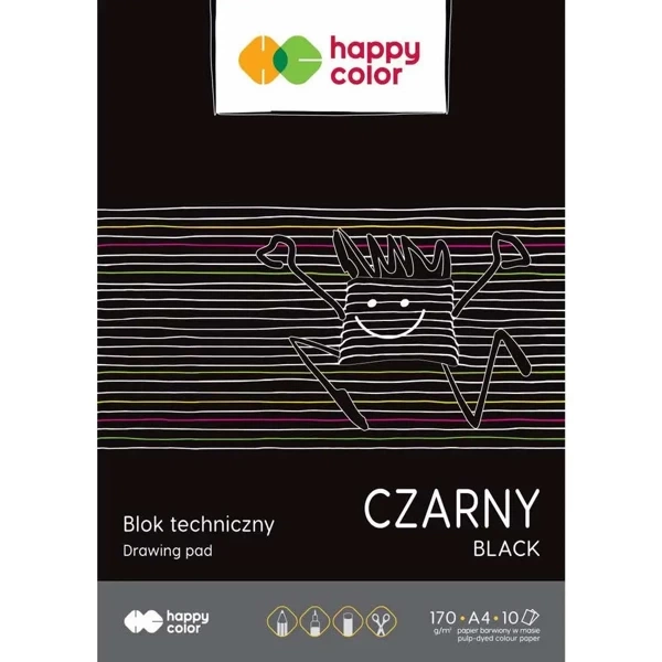 Blok techniczny: Czarny, A4, 170g, Happy Color, pakiet 20 sztuk