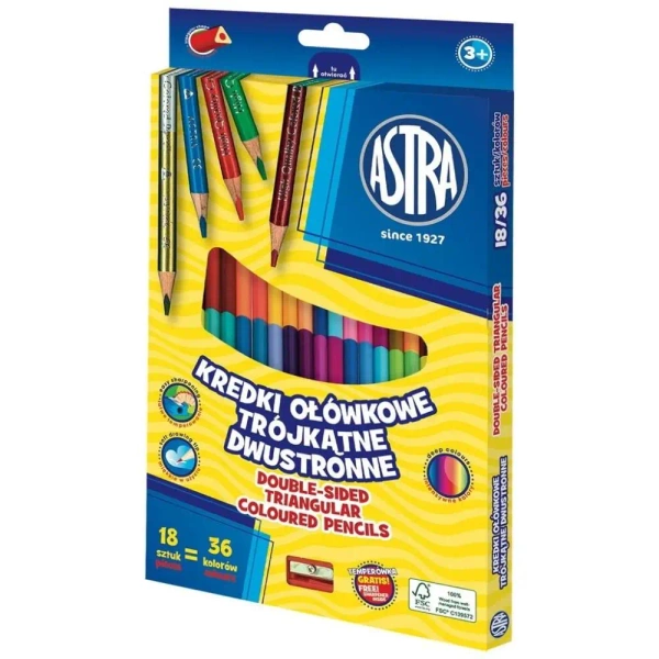 Kredki ołówkowe trójkątne dwustr. 18=36 kol. ASTRA - ASTRA papiernicze