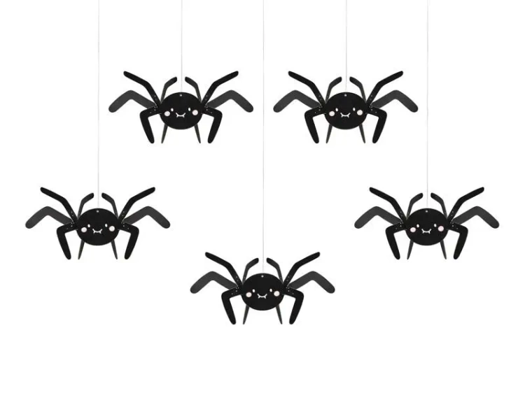 Dekoracja papierowa Pająki 27x17cm czarny 5szt - PartyDeco