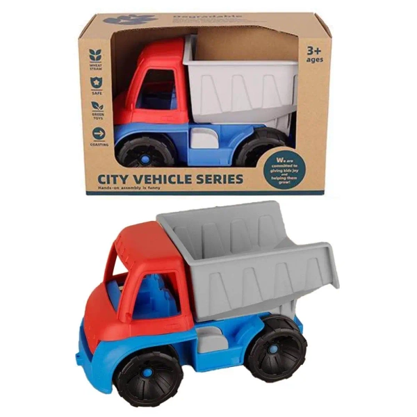 Przedstawiamy plastikową wywrotkę od Askato. Zabawka charakteryzuje się kompaktowymi wymiarami opakowania wynoszącymi 25.5 x 14 x 17 cm.