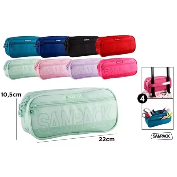 Prezentujemy piórnik z trzema komorami o wymiarach 22x10,5 cm. Produkt dostępny jest w różnym mixie kolorów. Wybieramy barwę losowo i wysyłamy do klienta.