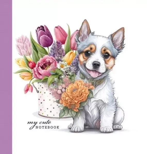Ozdobny notatnik o wymiarach 100x100 z 48 gładkimi kartkami, twardej oprawie Twarda 23217, z motywem Pieska