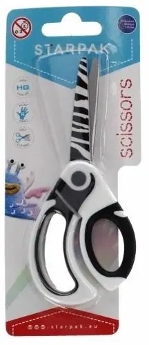 Niezawodne, precyzyjne nożyczki o długości 13,5 cm z motywem zebry marki STARPAK są niezbędnym narzędziem zarówno do celów szkolnych, jak i domowych. Ten produkt charakteryzuje się wysokiej jakości ostrzem wykonanym z stali nierdzewnej, co gwarantuje jego trwałość i niezawodność. Ergonomiczna i komfortowa plastikowa rączka zapewnia łatwość użycia, optymalizuje siłę cięcia, a jednocześnie podnosi precyzję pracy. Design nożyczek jest dostosowany zarówno dla osób prawo- jak i leworęcznych, co sprawia, że są one produktem uniwersalnym. Niezależnie od tego, czy szukasz narzędzia do pracy w szkole, czy też do zastosowania domowego − nożyczki 13,5cm Zebra STARPAK stanowią doskonały wybór.