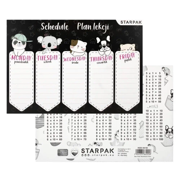 Plan lekcji z tabliczką mnożenia Minisy (25szt) - STARPAK