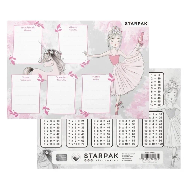 Plan lekcji z tabliczką mnożenia Balerina (25szt) - STARPAK
