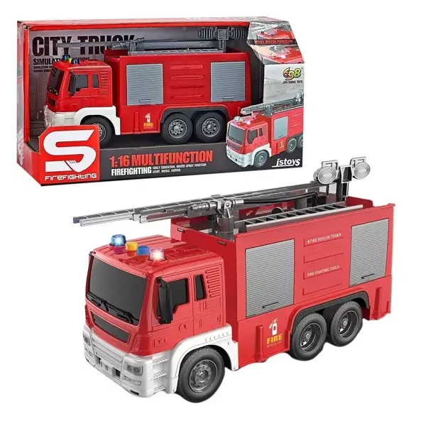 Zapraszamy do poznania realistycznej miniatury straży pożarnej o skali 1:16, która wyróżnia się zdolnością do chlapania wodą. Uwzględniając szczegółowość modelu, nie brakuje również otwieranych bocznych drzwi. Co więcej, ten intrygujący produkt oferuje efekty dźwiękowe i świetlne, które dodają realizmu i sprawiają, że zabawa nabiera jeszcze więcej barw. Do działania wymaga trzech baterii AG13, które są dołączone do zestawu, co gwarantuje natychmiastową zabawę od momentu otwarcia pudełka.