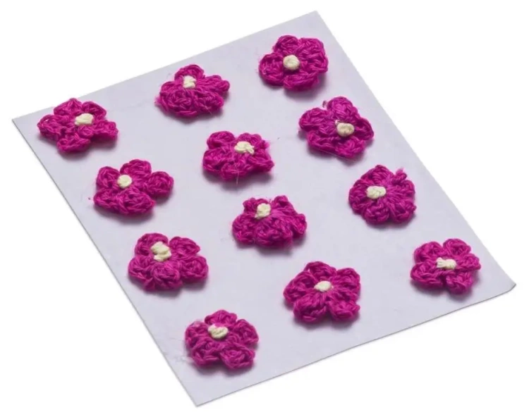 W ofercie posiadamy ciemnoróżowe, dekoracyjne kwiatki o średnicy 18mm. Każdy zestaw zawiera aż 12 sztuk, a więc można nim uatrakcyjnić swoje prace plastyczne czy dekoracje w domu czy na imprezie.