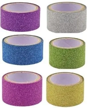 Zapoznaj się z naszą kolekcją taśm z brokatem o szerokości 18mm, dostępną w zestawie sześciu różnych kolorów. Idealnie komponuje się z różnorodnymi projektami rękodzielniczymi i ozdabia codzienne przedmioty, dodając im blasku.