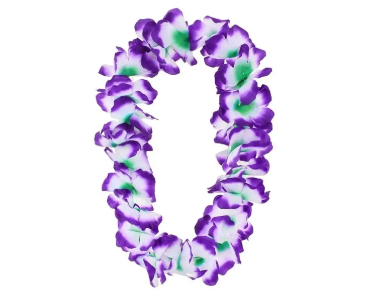Zanurz się głęboko w tropikalnym klimacie z naszym naszyjnikiem hawajskim. Wyróżnia się dzięki swojemu intensywnemu, fioletowo-białemu kolorowi. Wykonany z poliestru, jest niezwykle trwały i może służyć jako rewelacyjny dodatek do różnorodnych stylizacji.