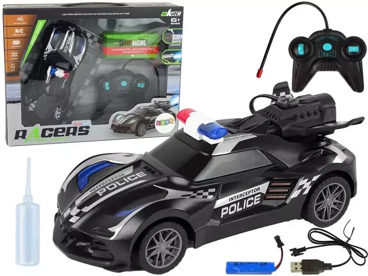 Samochód ma wbudowane efekty świetlne, które dodają zabawie emocji. Jakby tego było mało, ten model samochodu wyróżnia się wyjątkową funkcją - emituje parę wodną z wydechu, co daje efekt intensywnej jazdy i podkreśla prawdziwość pracy policjantów.