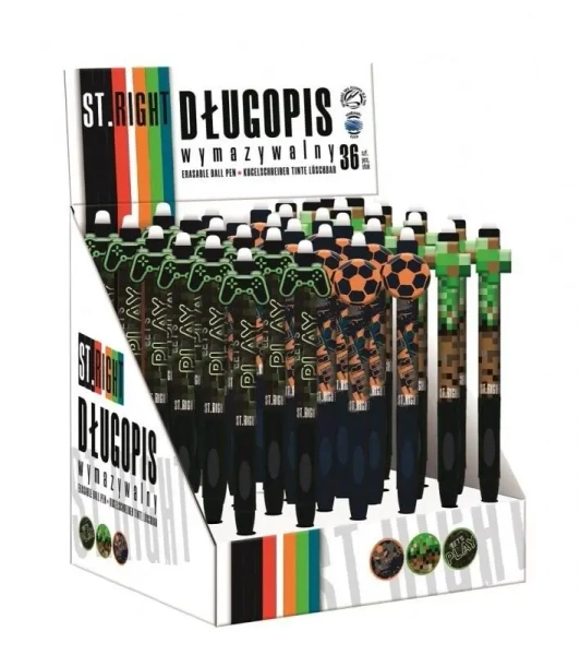 Automatyczny, wymazywalny długopis z ergonomicznym uchwytem - komplet 36 szt. w wydaniu chłopięcym od ST.RIGHT