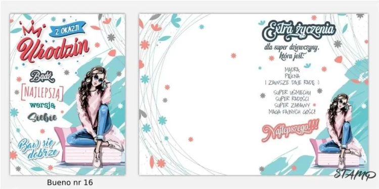 Karnet Bueno B6 + koperta wzór nr 16 Urodziny - Stamp