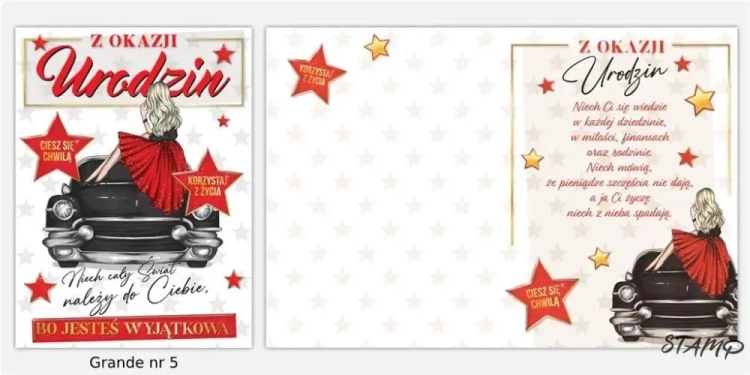 Karnet Grande + koperta wzór nr 05 Urodziny - Stamp