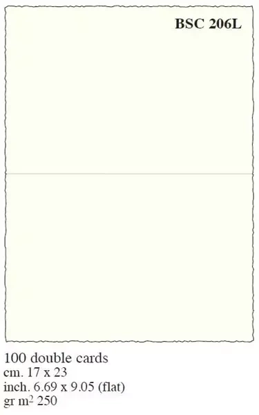 Ten pakiet składa się z 100 składanych karnetów, które wykonane są z wysokiej jakości papieru czerpanego. Rozmiar każdego karnetu przed złożeniem wynosi 13 x 17 cm. Produkt prezentuje się w eleganckim kremowym odcieniu. Składa się z perforowanych kart, co ułatwia ich zginanie i składanie. Gramatura użytego papieru wynosi 250g/m2, co świadczy o solidności i wytrzymałości każdego karnetu. Ten ekskluzywny zestaw karnetów został wytworzony z dbałością o detal we Włoszech.