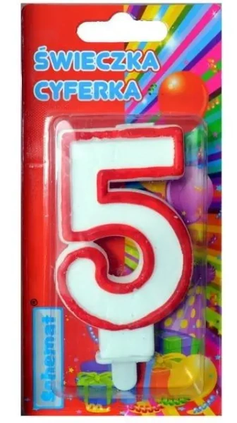 Prezentujemy świeczkę, która jest w formie cyfry 5. Jest to element, który doskonale przydaje się podczas świętowania różnych okazji.