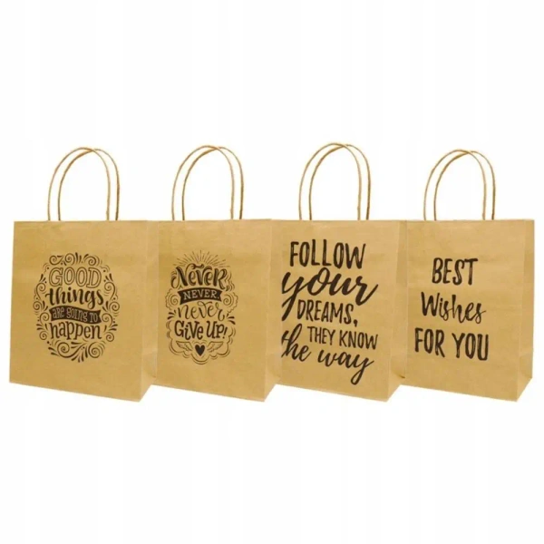 Ta torba prezentowa o wymiarach 21x25,5 cm została stworzona z papieru kraft w stylu eko. Na powierzchni torby znajdują się unikalne napisy.