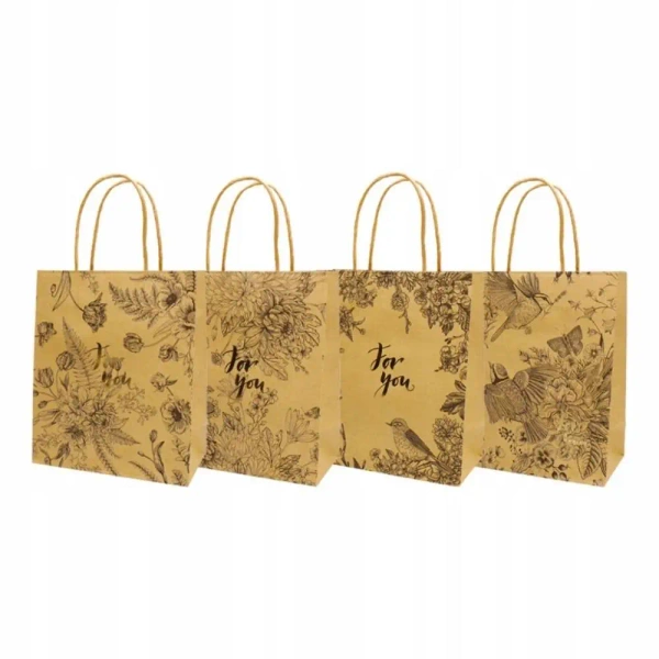 Torba prezentowa w rozmiarze 21x25 cm jest produktem pierwszorzędnym, bowiem jest realizowana z wysokogatunkowego ecopapieru kraft. Wzory na torbie nawiązują do motywów roślinnych, co nadaje jej niepowtarzalny charakter i estetykę.