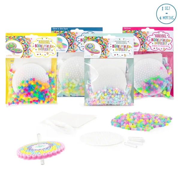 Ta ożywiona wersja klasycznej zabawki pozwala na stworzenie własnego, niepowtarzalnego bączka. Dzięki zastosowaniu tęczowego mixu koralików do prasowania, możesz stworzyć dowolne wzory i obrazy. Następnie, wystarczy wprasować je żelazkiem i przekuć w bączek, wtłaczając patyczek przez otwór w środku.