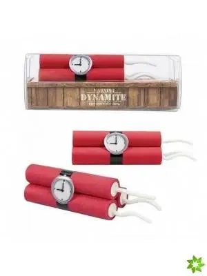 Podkładka ostrzegawcza! Ten zestaw gumek do ścierania to prawdziwe „materiały wybuchowe”. Składa się on z trzech mini lasek dynamitu, każda z nich owinięta w opaskę z zegarkiem odmierzającym czas.