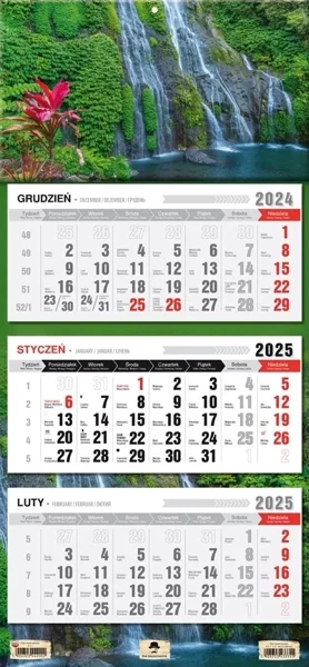Kalendarz 2025 Trójdzielny płaska główka Wodospad - Pan Kalendarzyk
