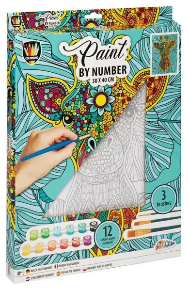 Zestaw do malowania po numerach, motyw: żyrafa, wymiary: 30x40, liczący 12 kolorów