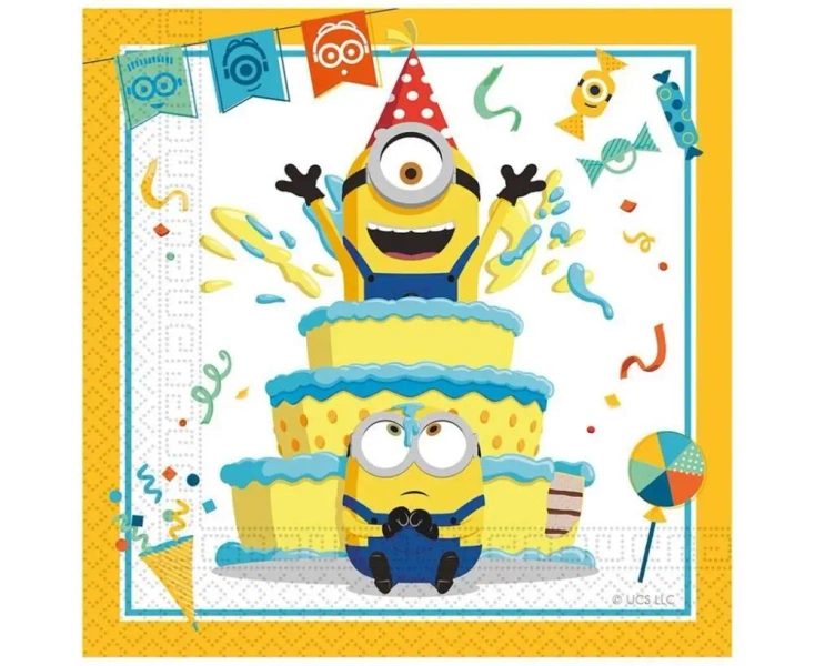 Prezentujemy unikalne serwetki papierowe z wizerunkiem popularnych Minionków. Ich wymiary to 33 x 33 cm, co gwarantuje praktyczność i wygodę użytkowania. Wykonane są w przyciągającym wzrok, jasnym kolorze żółtym, który doda energii każdej domowej lub przyjęciowej aranżacji. Główna ozdoba serwetek - obrazek Minionków - na pewno przypadnie do gustu młodym fanom tych sympatycznych postaci. Serwetki są wykonane z papieru, co zapewnia ich ekologiczność i łatwość w utylizacji po użyciu. W jednym opakowaniu znajdziesz aż 20 sztuk tych oryginalnych serwetek, więc z łatwością wystarczą na większe spotkanie czy uroczystość.