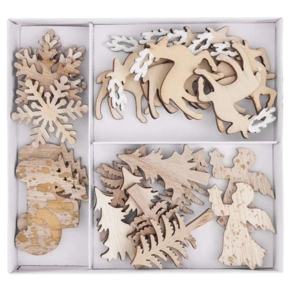 Drewniane motywy świąteczne naturalne 24szt - Dalprint dpCraft