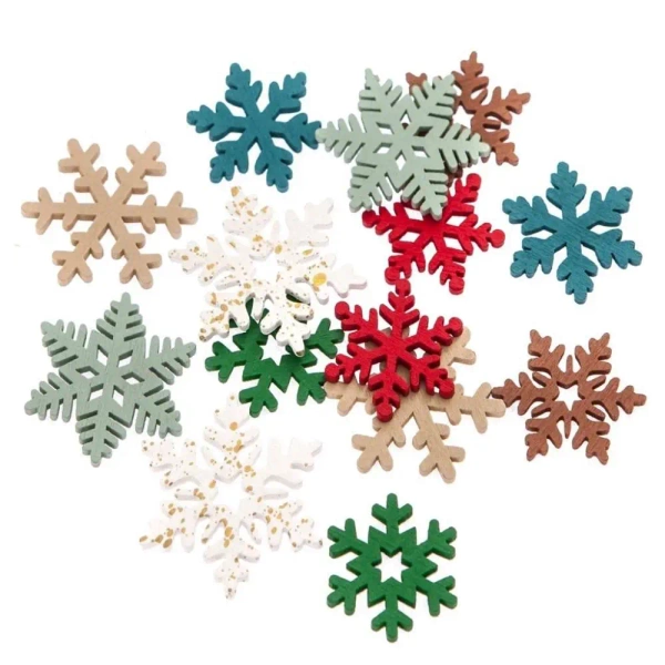 Drewniane śnieżynki multikolor 14szt - Dalprint dpCraft