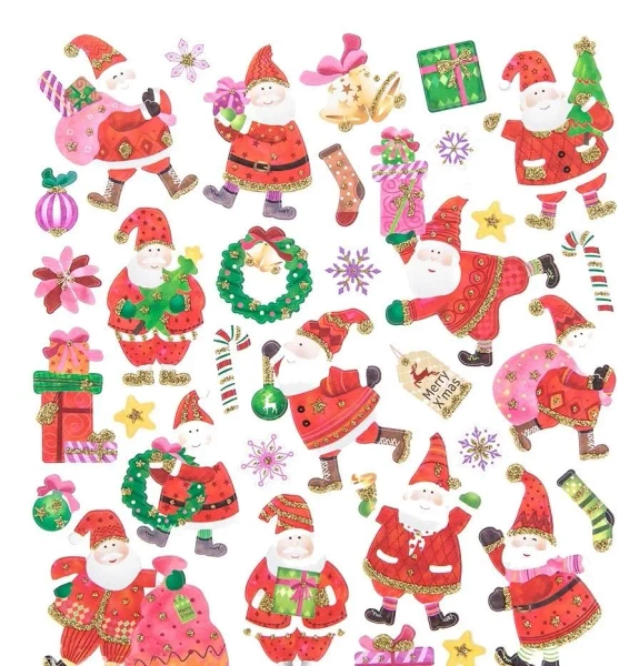 Naklejki z brokatem mikołaje 32szt - Dalprint dpCraft