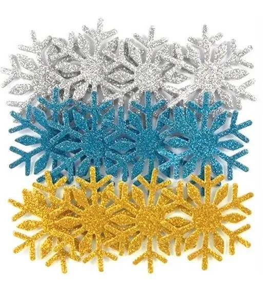Naklejki z pianki brokat śnieżynki 12szt - Dalprint dpCraft