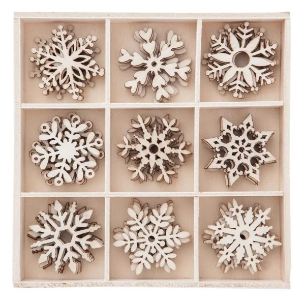 Zestaw Drewniane Śnieżynki to doskonałe uzupełnienie dla wszelkiego rodzaju projektów świątecznych, takich jak cardmaking, scrapbooking oraz home decor i wiele innych. Nadaj swoim twórczym pracom klimat zimowy! Te drewniane kształty są świetne do indywidualnego ozdabiania - możesz je malować, ozłacać za pomocą techniki hot stamping, lub zachować w ich naturalnym stanie.