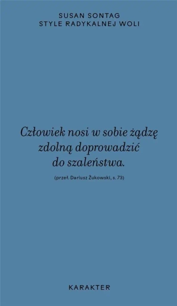 Tom esejów amerykańskiej pisarki obejmuje teksty o myśleniu pornograficznym, ciszy, Cioranie i Bergmanie. Szczególnie ciekawie rezonuje dziś artykuł będący odpowiedzią na ankietę Co się dzieje w Ameryce przeprowadzoną w 1966 roku przez Partisan Review. Sontag pisała tam między innymi: Nie sądzę, by białej Ameryce zależało na równouprawnieniu Czarnych. Jest to ważne tylko dla wąskiego grona białych Amerykanów, w większości wykształconych i majętnych, z których w dodatku tylko mała część ma jakieś bliższe osobiste kontakty z Czarnymi. To kraj gorliwie rasistowski. I taki pozostanie w dającej się przewidzieć przyszłości.