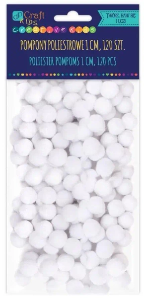 Pompony poliestrowe białe 1cm 120szt - Dalprint