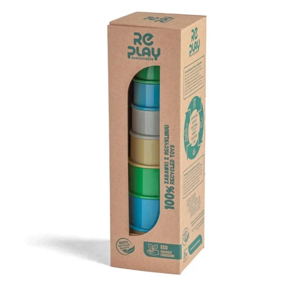 Zabawka edukacyjna dla dzieci - kubeczki piramidka od RePlay Sustainable.