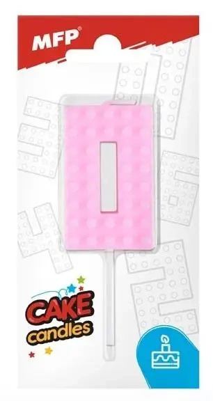 Różowa świeczka urodzinowa w formie klocków z cyfrą 0