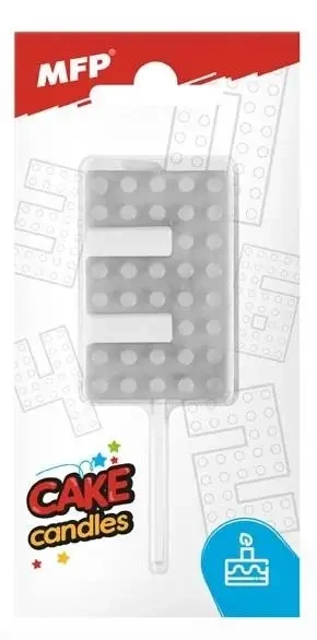 Szara świeczka urodzinowa w kształcie cyfry 3 stylizowana na klocki
