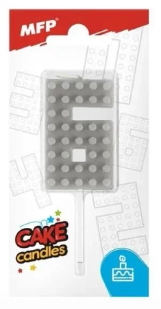 Urodzinowa świeczka w kształcie szarego klocka z numerem 6