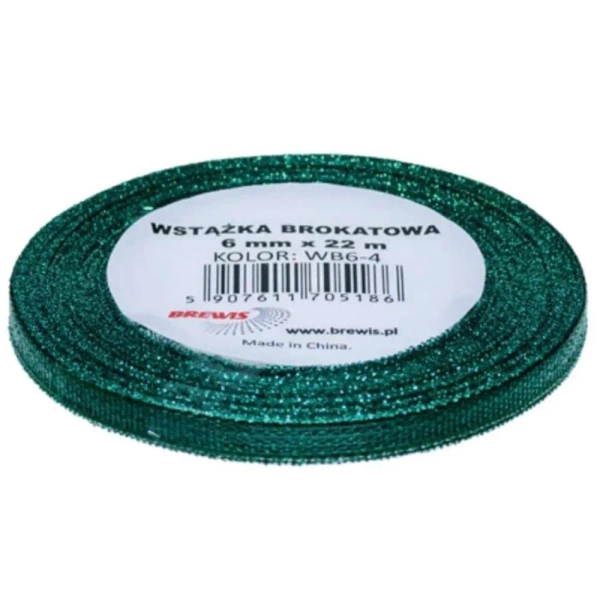 Wstążka brokatowa zielona 6mmx22m - Brewis