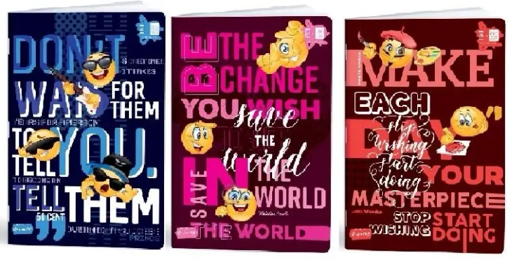 Każdy zeszyt jest dostępny w jednym z sześciu wzorów okładek. W opakowaniu znajduje się 10 egzemplarzy w różnych wzorach.