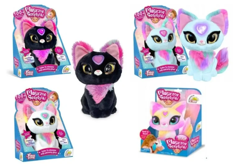 Tajemnicza Kicia Cobi chce szepnąć Ci coś do ucha. Połóż swoje czoło na jej serduszkowatej główce, a posłuchaj, co ma Ci do przekazania. Tylko Tobie udziela swoich sekretów, a reszta usłyszy jedynie miauczenie i mruczenie. Trzy tryby zabawy: czatowanie, wróżenie i opowiadanie. Kicia posiada ponad 100 tajemniczych fraz i dźwięków. Zasilanie: 3 x AAA (baterie nie dołączone). Do wyboru mamy takie modele: Luna (kolor biały), Cleo (kolor miętowy), Trixie (kolor różowy).