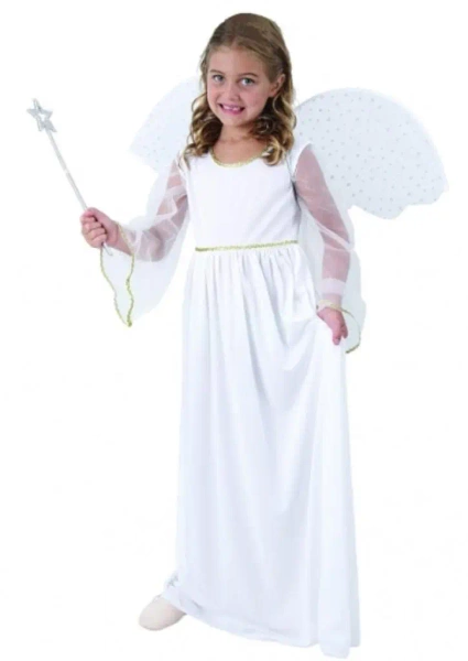 Prezentujemy idealny strój dla twojej pociechy. Pasuje na dzieci o wzroście 110/120 cm. Jego wymiary to: całkowita długość - 92 cm, szerokość pod pachami - 29 cm oraz szerokość w pasie - 30 cm. Wykonany jest w 100% z poliestru, co gwarantuje komfort podczas noszenia. Strój dodatkowo urozmaicony jest skrzydełkami, które sprawią, że twoje dziecko poczuje się jak prawdziwy aniołek.