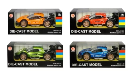 Wysokiej jakości pojazd z częściami wykonanymi z metalu oraz tworzywa sztucznego. Samochód działa na mechanizm napędu pull-back.Pojazd dostępny jest w różnorodnych odcieniach, wybór koloru odbywa się przypadkowo. Wskazana cena obejmuje jedną jednostkę produktu.