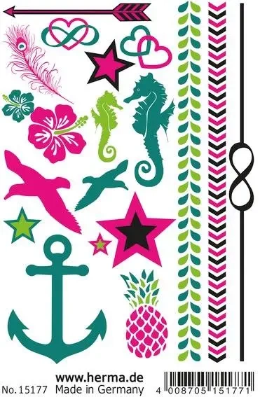Produkt jest zgodny z wszystkimi wymaganiami regulacji Unii Europejskiej dotyczącej kosmetyków. Każde opakowanie zawiera jeden blister tatuaży.