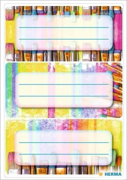 W opakowaniu znajduje się 9 sztuk naklejek. Posiadają one wymiary 8,5 x 12 cm, co sprawia, że są idealne do personalizacji różnego rodzaju artykułów szkolnych. Naklejki są zdobione motywem pędzli, co świadczy o ich artystycznym charakterze. Dzięki nim, każdy przedmiot szkolny nabierze niepowtarzalnego wyglądu.